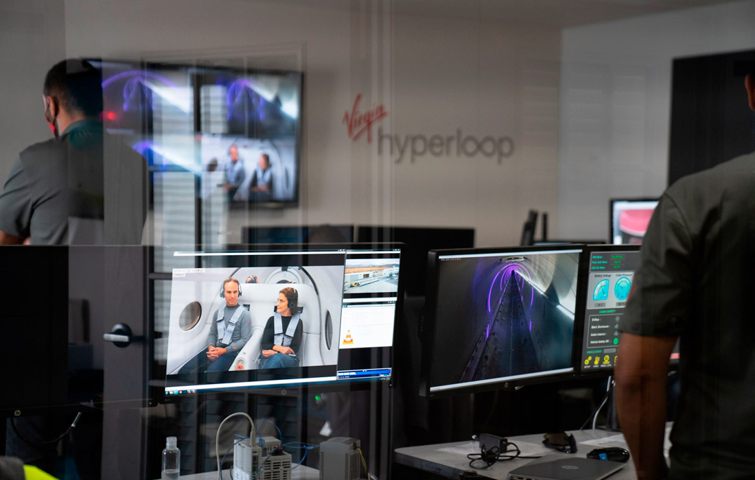 Компания Virgin успешно провела первые испытания запуска капсулы с пассажирами в вакуумной трубе. Два сотрудника компании Джош Гигель и Сара Лучиан проделали в экспериментальном треке путь длиной 500 метров за 15 секунд, их капсула разогналась до 172 км в час и плавно затормозила.