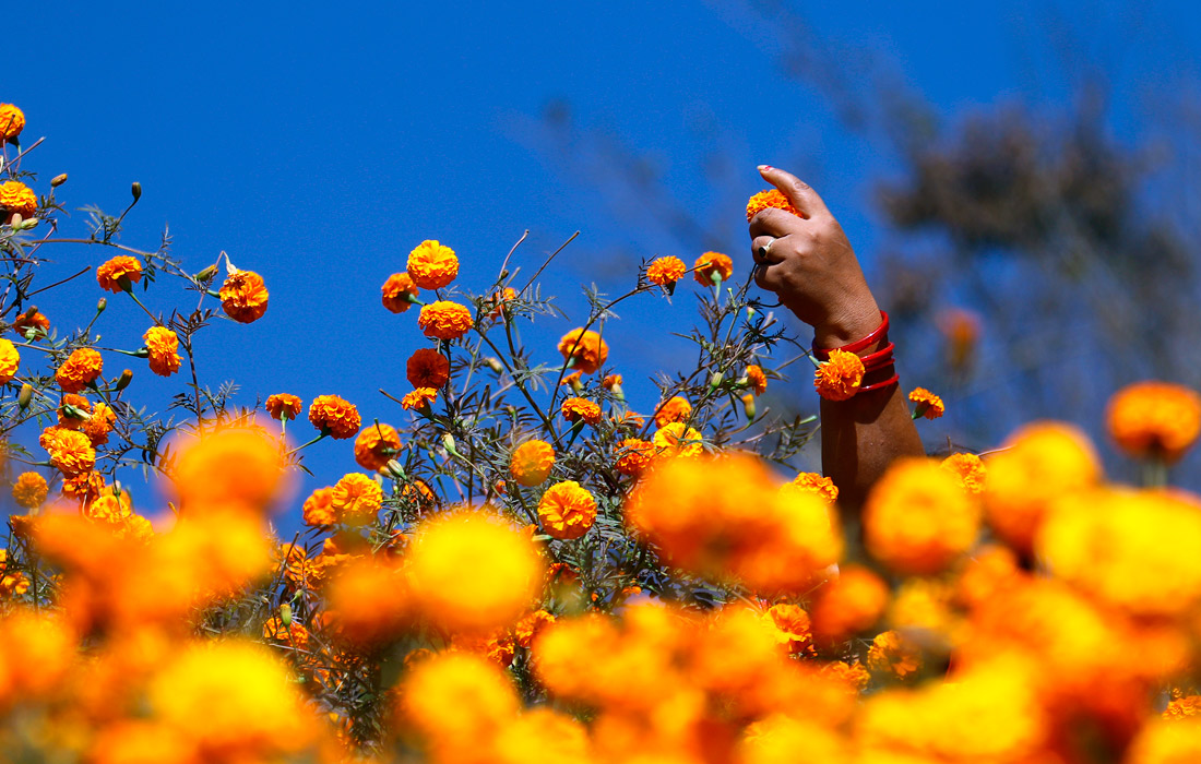 Сбор бархатцев к индуистскому фестивалю Тихар в Непале