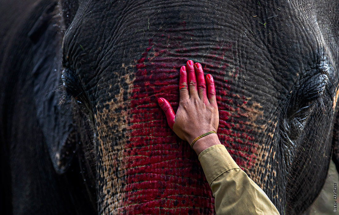 Погонщик готовит слона к встрече с туристами. Штат Ассам, Индия.