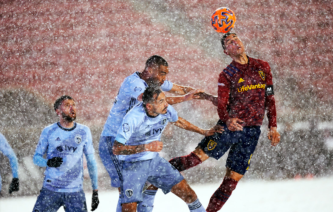 Во время футбольного матча между "Реал Солт-Лейк-Сити" и "Спортинг Канзас-Сити" в Сэнди. США.