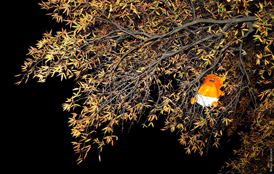 Воздушный шар с изображением Дональда Трампа застрял на дереве в Вашингтоне, США