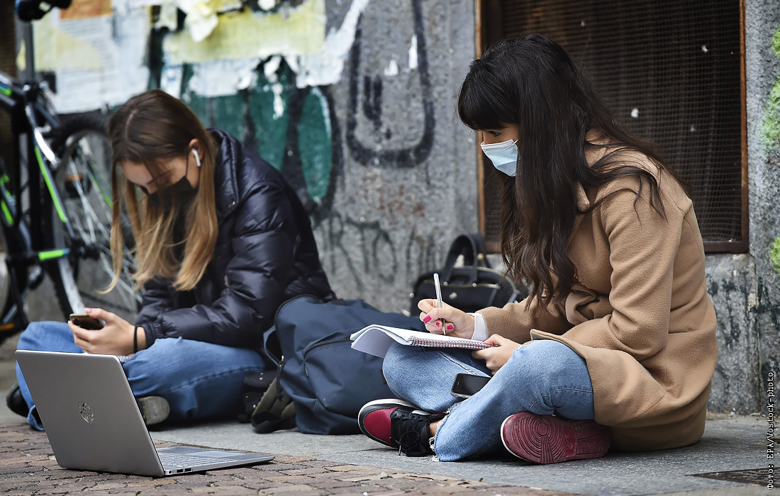 Из-за закрытия школ в итальянском Турине ученики вынуждены заниматься на улицах города