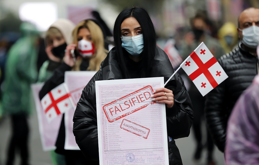 Митинг оппозиции против результатов парламентских выборов в Тбилиси