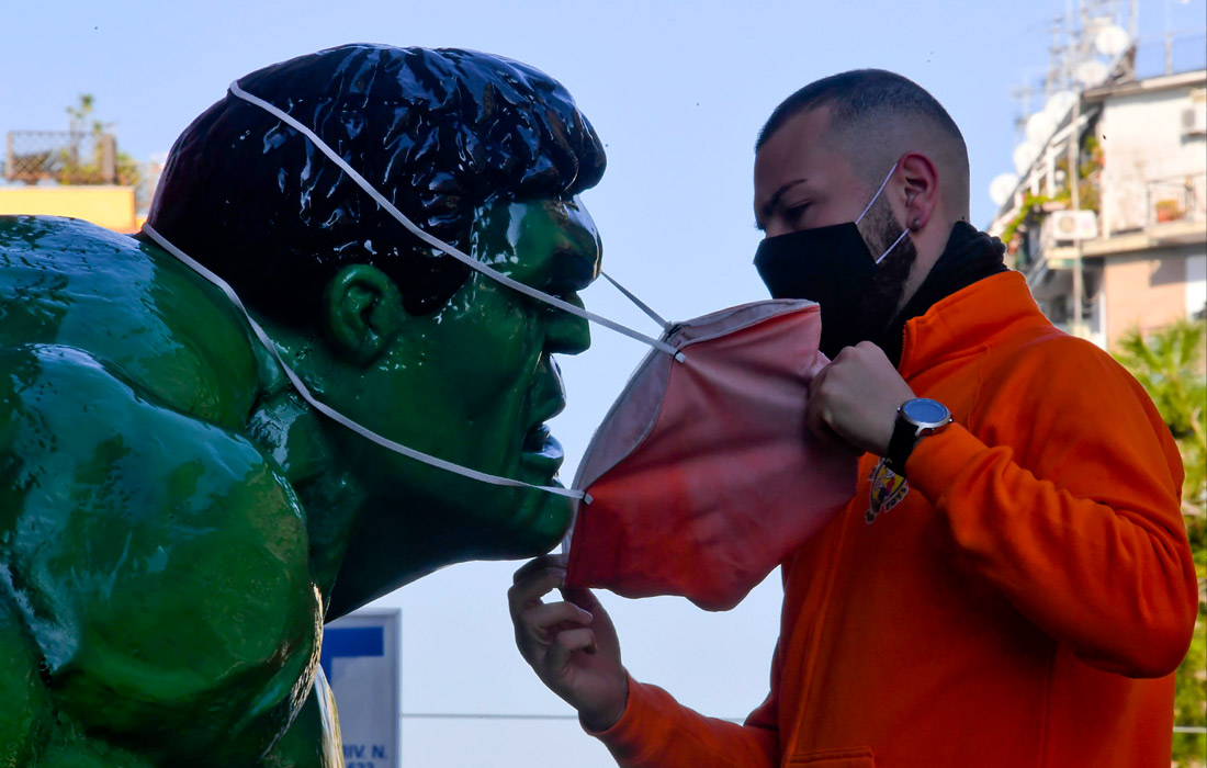 16 декабря. В Неаполе на фигуру супергероя комиксов Marvel Халка надели маску.