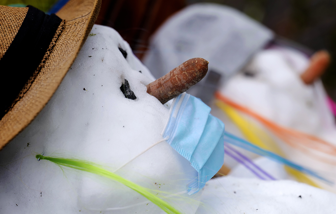 Снеговики в защитных масках в немецком Ханау