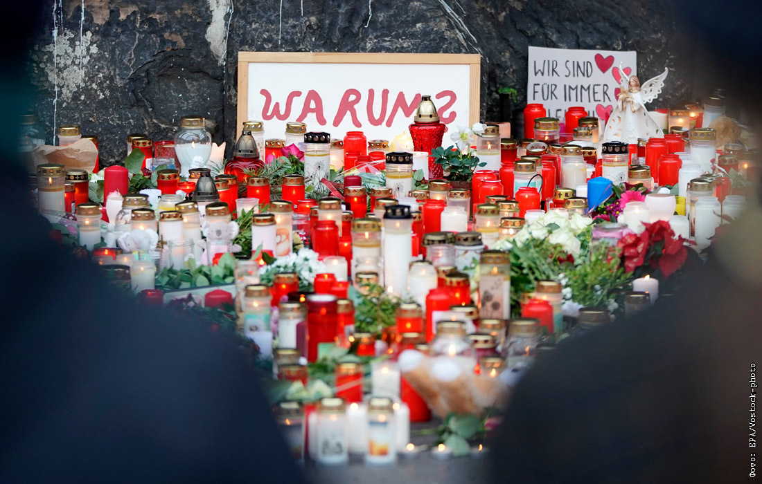 Жители немецкого города Трир устроили импровизированный мемориал на месте, где накануне 51-летний мужчина выехал на пешеходную зону. В результате аварии погибли четыре человека.