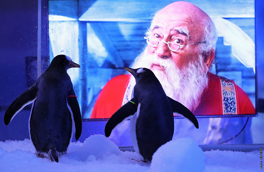 Пингвины смотрят рождественские фильмы в аквариуме Лондона