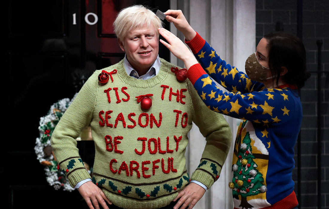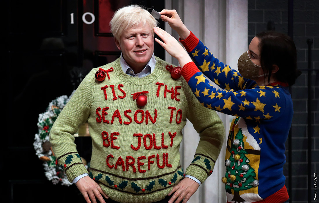 В лондонском Музее мадам Тюссо восковую фигуру премьер-министра Великобритании Бориса Джонсона переодели в рождественский свитер в поддержку ежегодной благотворительной акции фонда "Спасите детей"