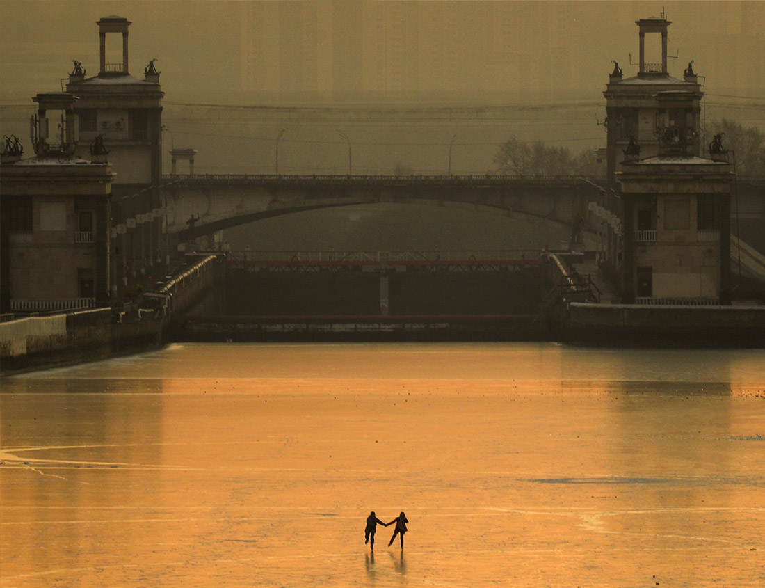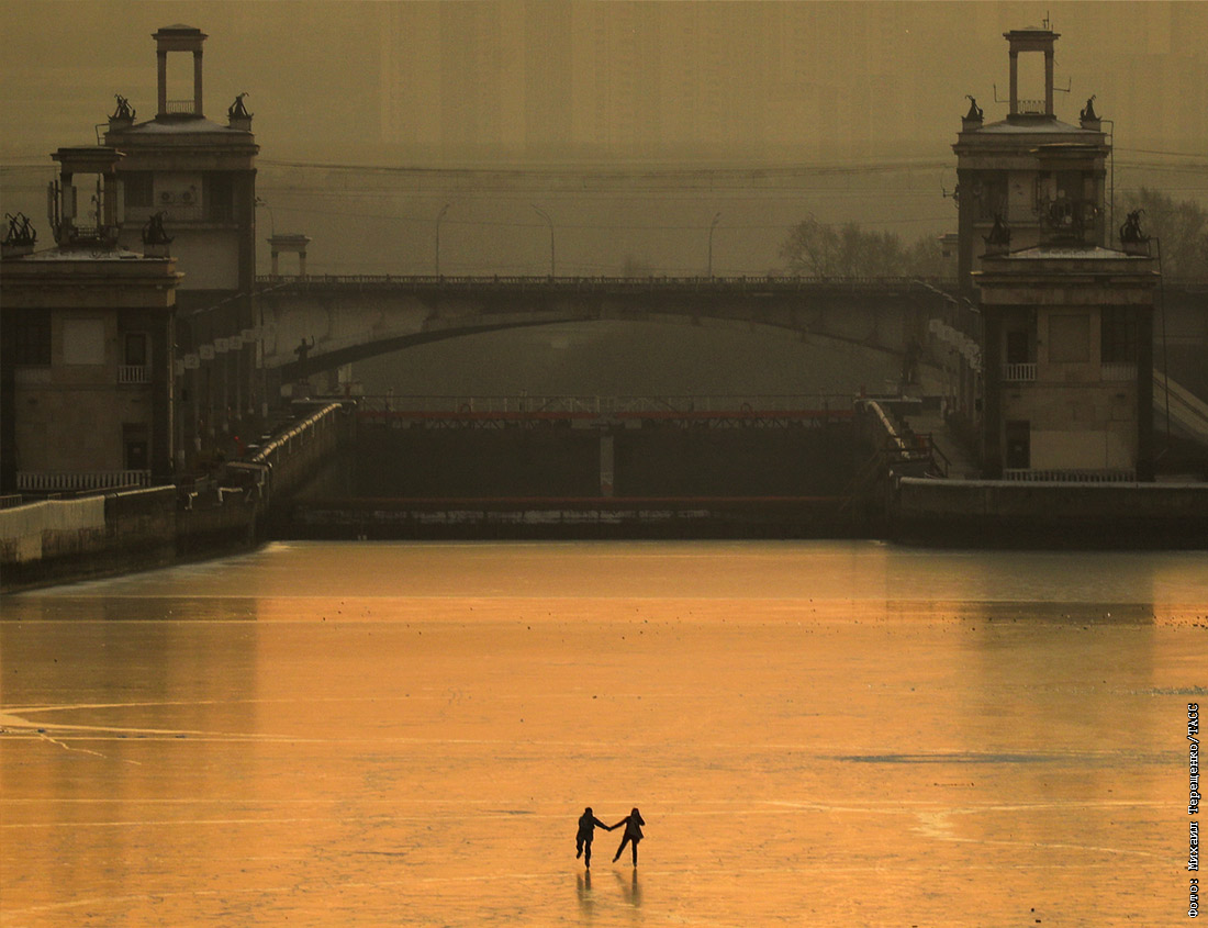 Горожане катаются на коньках по льду канала имени Москвы