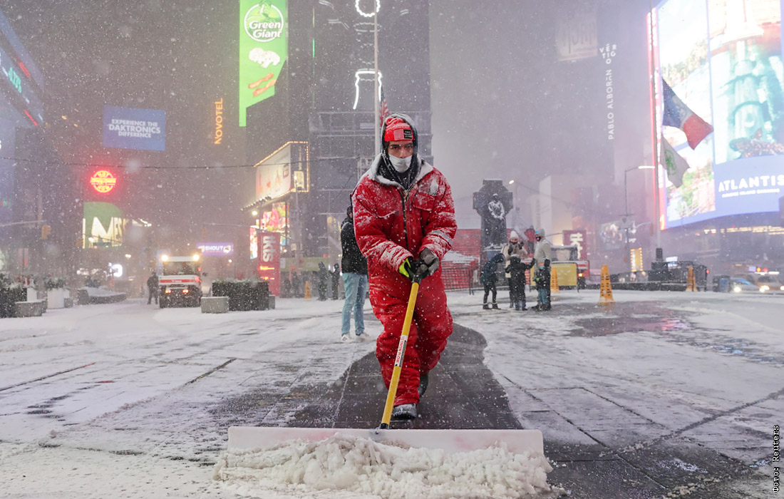 Нью-Йорк замело снегом