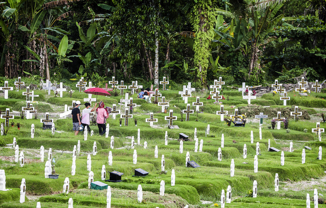 Президент Индонезии заявил, что правительство предоставит бесплатные прививки от COVID-19 всем гражданам страны. На фото: родственники посещают кладбище, где похоронены жертвы пандемии COVID-19, в Медане.