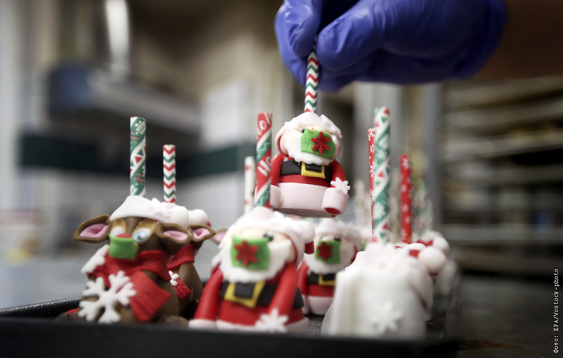 Рождественская выпечка в коронавирусной тематике в кондитерской немецкого Дортмунда