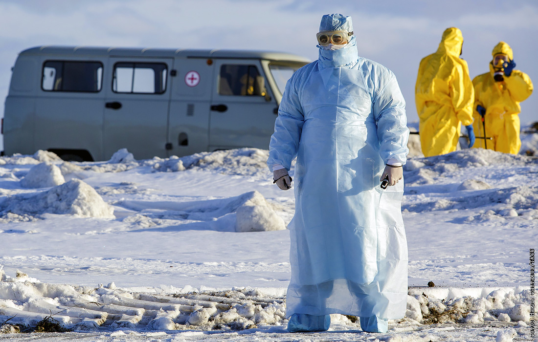 5 февраля. Сотрудники международного аэропорта Курчатова в Челябинске во время учений по проведению эвакуации пассажиров воздушного судна с симптомами коронавирусной инфекции.