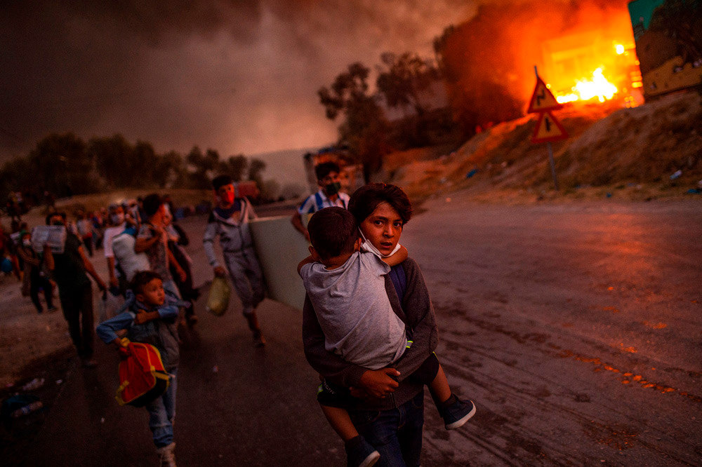 В ежегодном конкурсе "Фотография года", организованном ЮНИСЕФ (Детским фондом ООН), первое место заняла работа греческого фотографа Ангелоса Цорциниса. На ней изображены беженцы, покидающие охваченный огнем лагерь "Мория" на острове Лесбос. Победители и призеры фотоконкурса в галерее "Интерфакса".