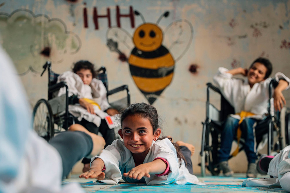 Житель сирийской деревни близ города Алеппо открыл школу каратэ для детей, в которой мальчики и девочки с ограниченными возможностями занимаются вместе со здоровыми сверстниками.