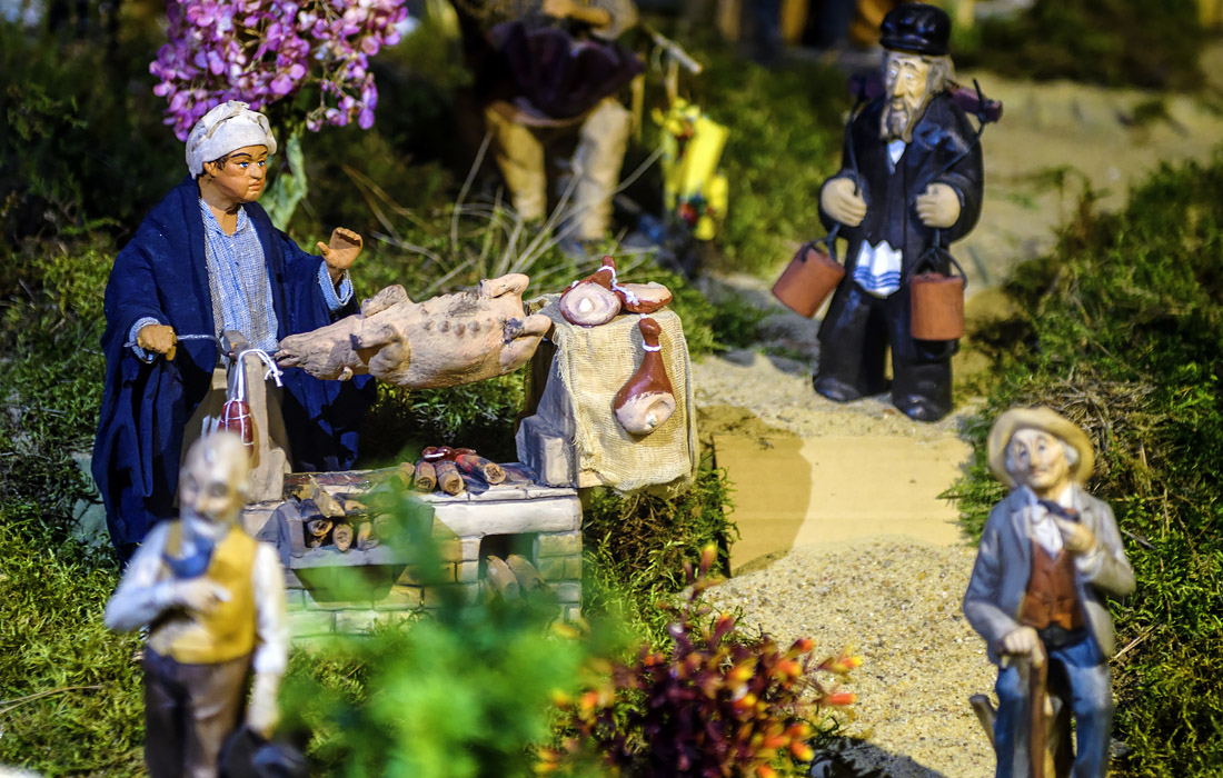 Деталь сцены рождественского вертепа, созданного вышедшими на пенсию машинистами поездов, на церковной выставке в Польше