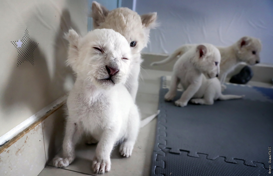 В парке дикой природы в китайском Наньтуне показали четырех редких белых львят, появившихся на свет 6 ноября