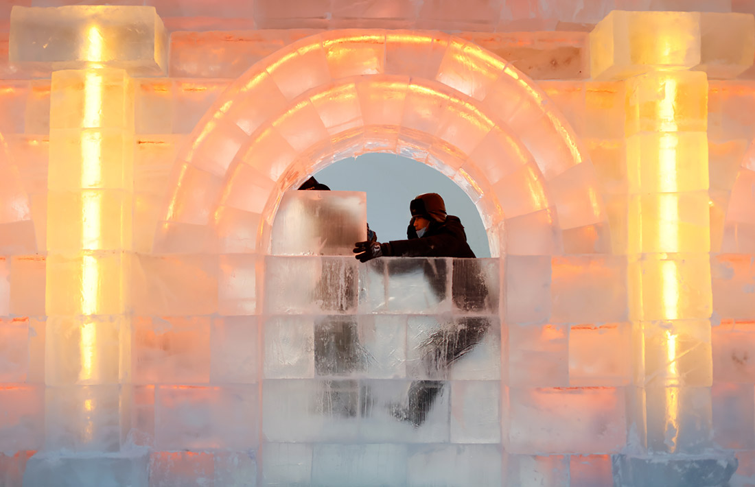 В Харбине на северо-востоке Китая готовятся к ежегодному международному фестивалю снежных и ледяных скульптур