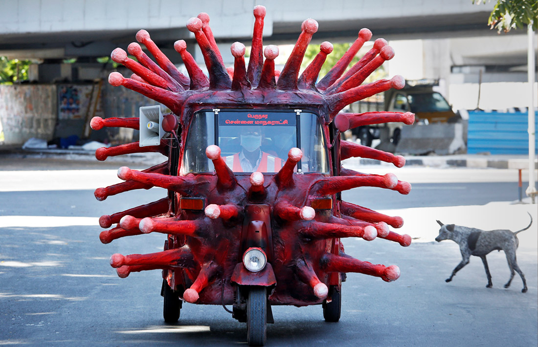 Моторикша в виде коронавируса в Ченнаи, Индия