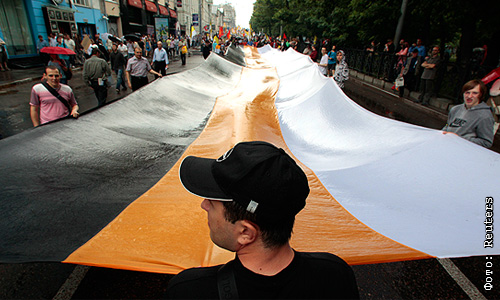 Корреспонденты сообщают, что на Пушкинской площади, несмотря на дождь, уже находятся примерно 5 тыс.человек, они разделились на две колонны; в правой стоят националисты, которые держат в руках транспаранты с лозунгами "Россия для русских". Кроме того, там присутствуют группы сторонников партии "Справедливая Россия", движения "Левый фронт", которые держат в руках флаги. Много людей с белыми лентами.