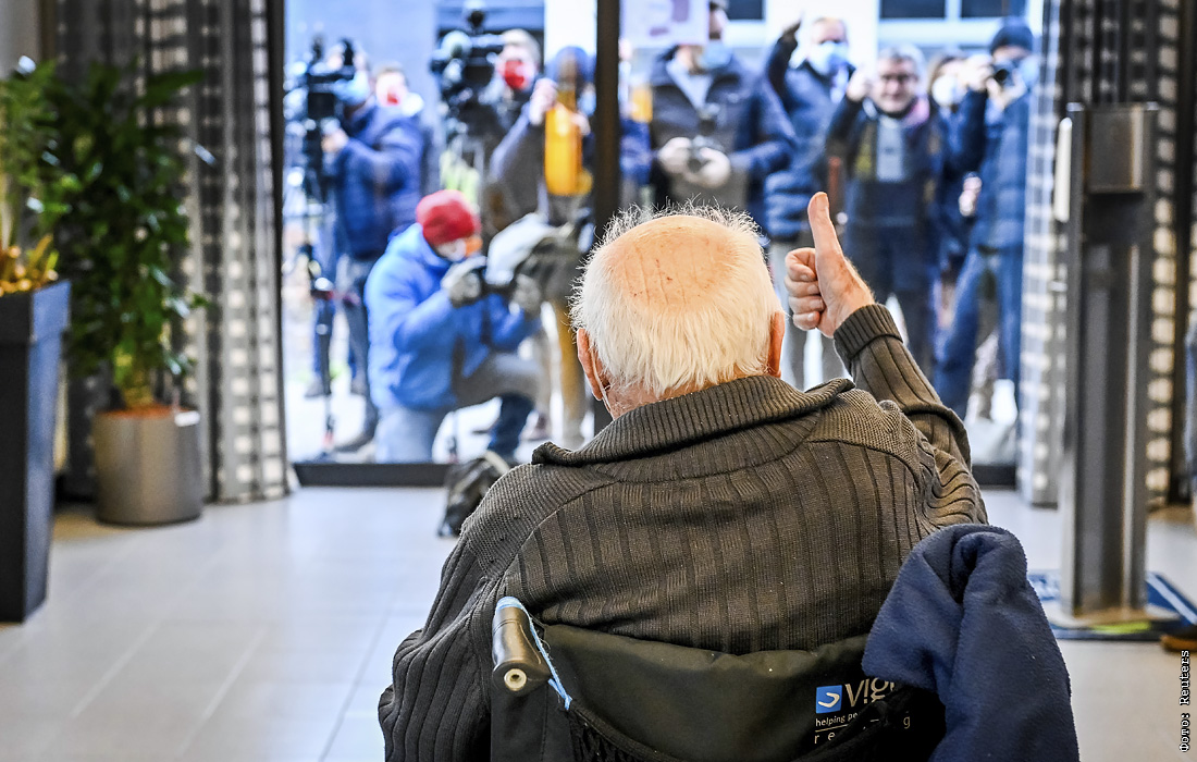 96-летний Джос Херманс получил дозу вакцины Pfizer/BioNtech от COVID-19 в больнице Антверпена, Бельгия