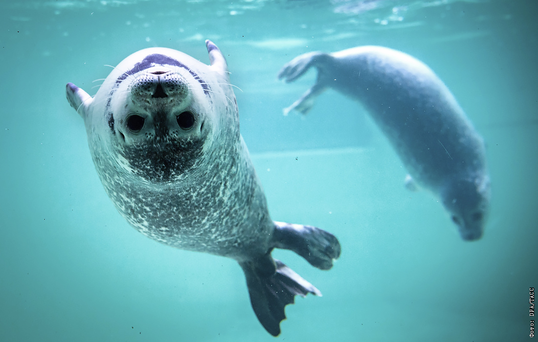 Тюлени на спасательной станции на побережье Северного моря в немецком Нордайхе