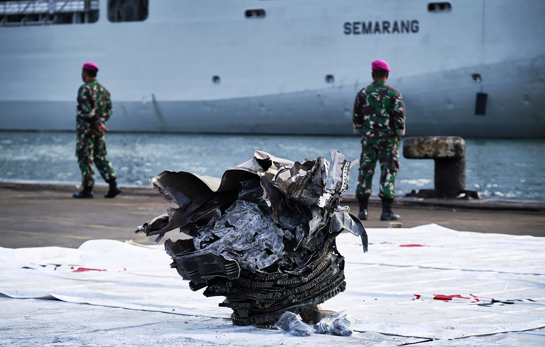 Поисково-спасательная операция на месте крушения пассажирского самолета в Яванском море. Самолет компании Sriwijaya Air, вылетевший в субботу из столицы Индонезии Джакарты, упал к северу от нее в Яванское море. На борту лайнера Boeing 737-500 находились 62 человека, включая шестерых детей.