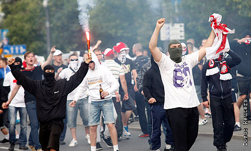 Футбольные фанаты в Варшаве