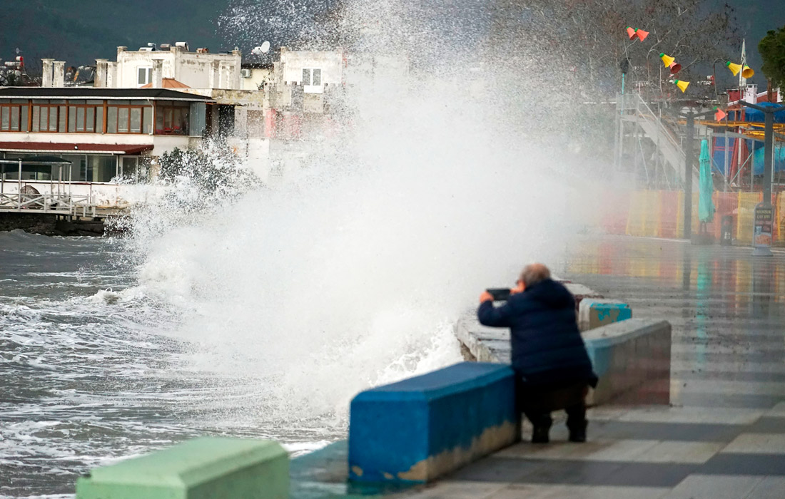 Волны обрушились на береговую линию залива Эдремит в Турции