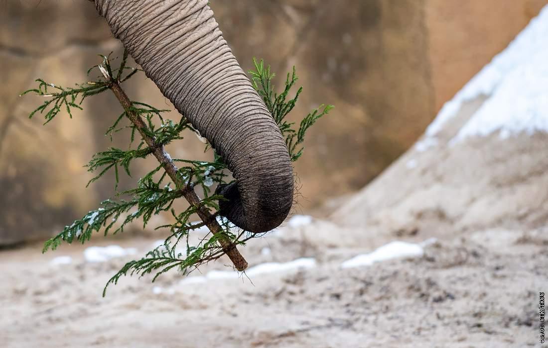 Слоны в сафари-парке чешского города Двур-Кралове-над-Лабем получили в качестве угощения нераспроданные рождественские ели