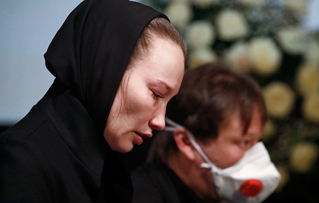 Вдова Грачевского актриса Екатерина Белоцерковская (на первом плане) и его сын Максим Грачевский (на втором плане)