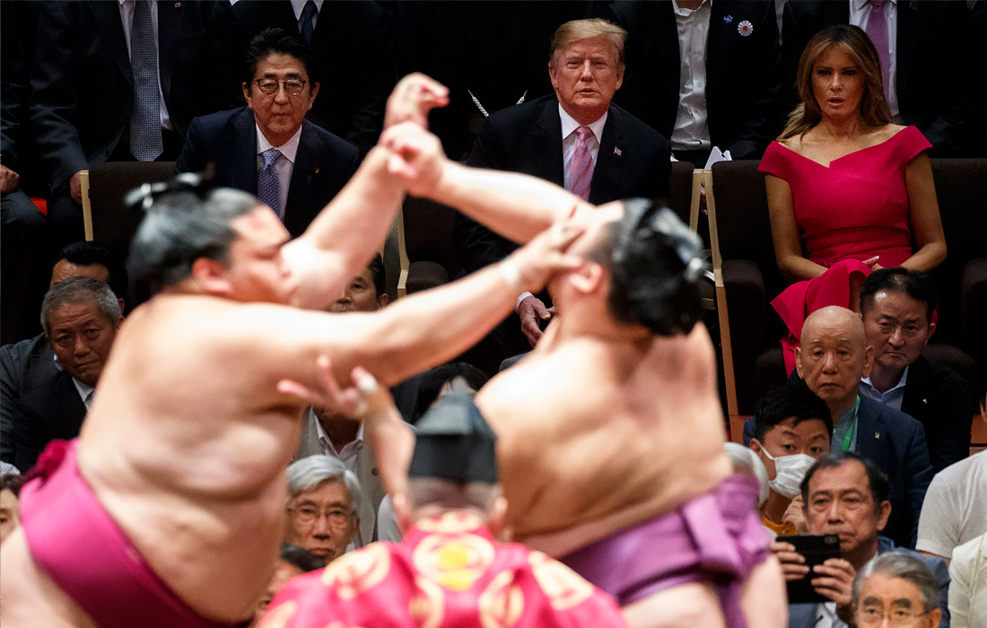 25 мая 2019 года Дональд Трамп вместе с первой леди Меланией Трамп, премьер-министром Японии Синдзо Абэ и его супругой Акиэ посетили турнир по японскому единоборству в Токио