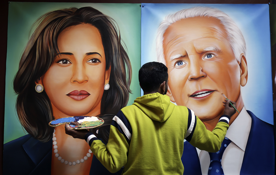 Индийский художник Джагджит Сингх Рубал написал портреты избранных президента США Джо Байдена и вице-президента Камалы Харрис в Амритсаре