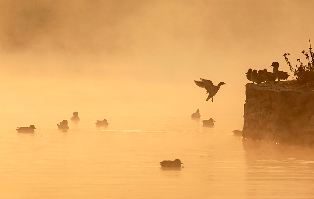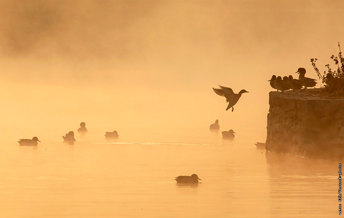 Утки на озере Таудаха на окраине долины Катманду, Непал