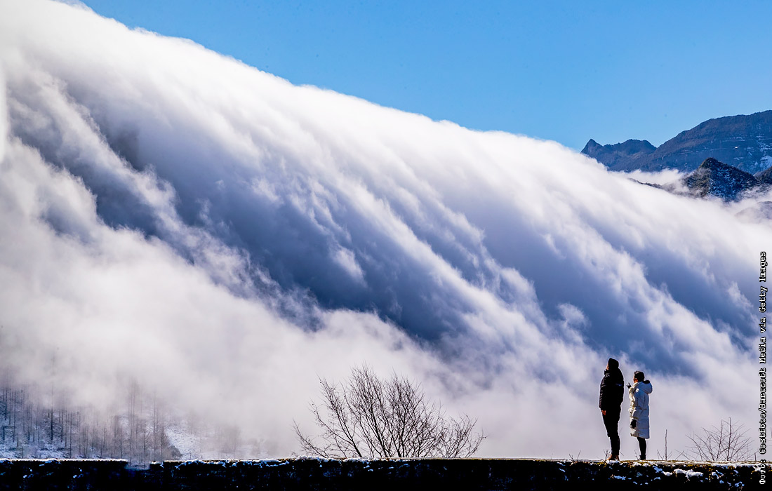 Облачный водопад у подножия горы Джинфо на юго-западе Китая