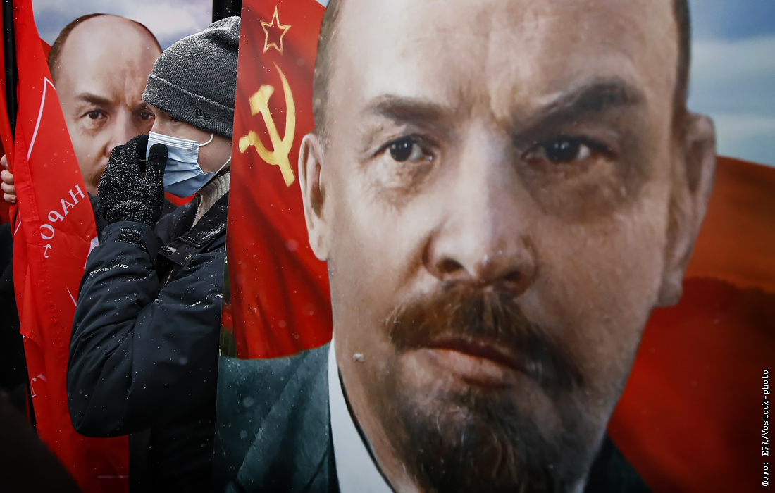 На Красной площади в Москве прошло шествие сторонников КПРФ в 97-ю годовщину со дня смерти Ленина