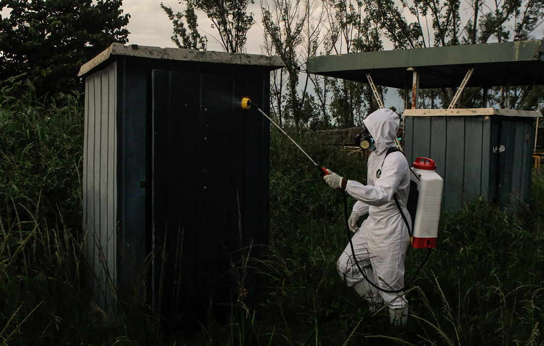 Дезинфекция общественных объектов в Зимбабве