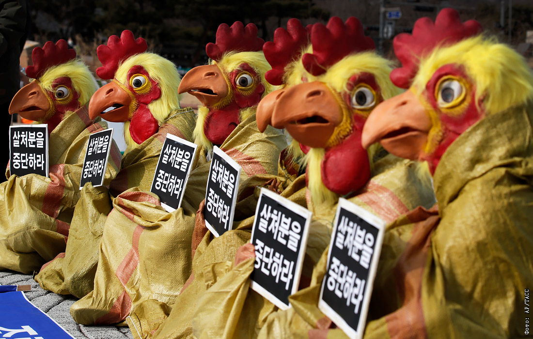 В Сеуле прошла акция зоозащитников против массовой ликвидации птиц на фермах из-за высокопатогенного птичьего гриппа