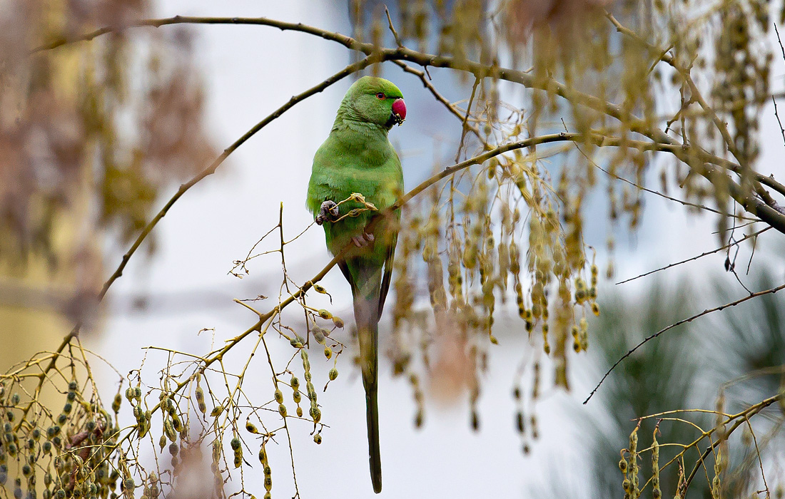Зеленый попугай в зоопарке Анкары, Турция