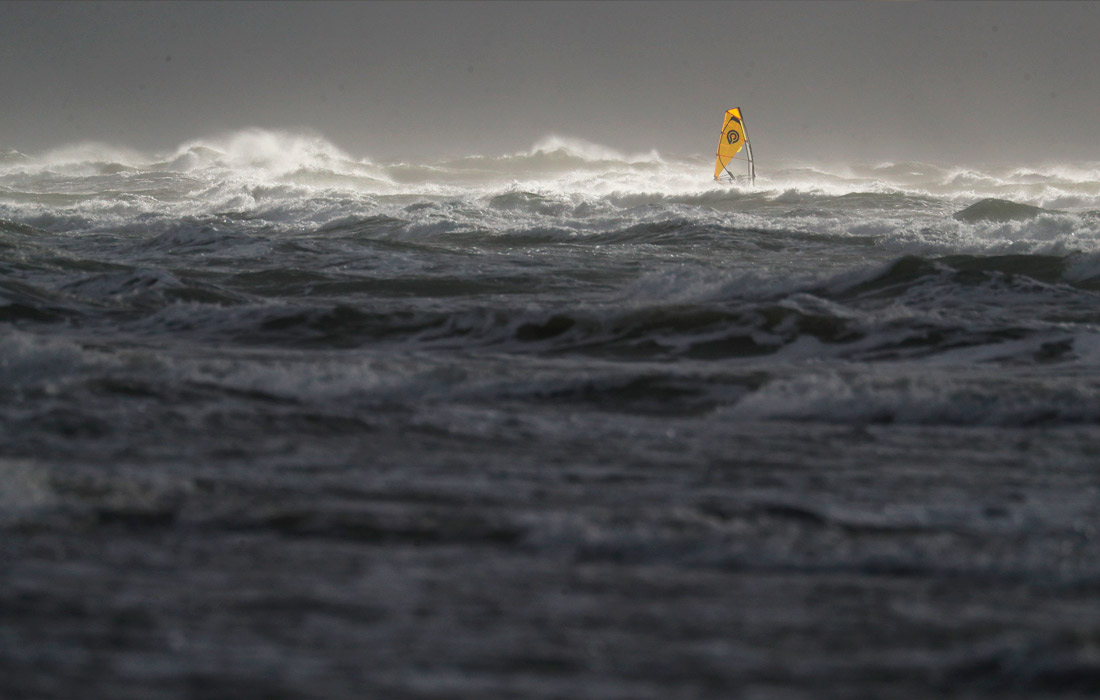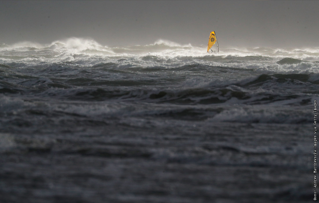 Зимний виндсерфинг в графстве Сассекс на юго-востоке Англии