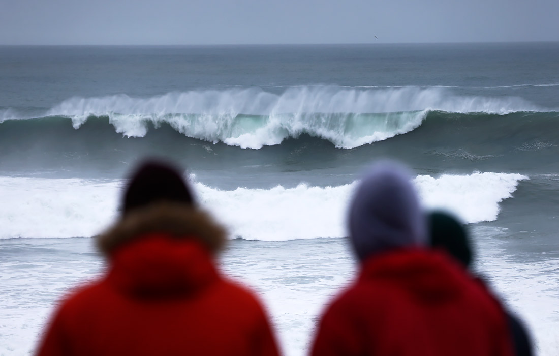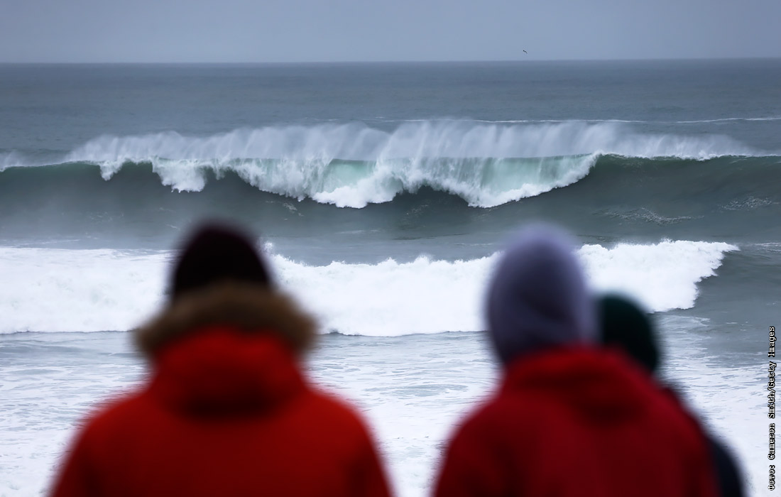Огромные волны обрушились на побережье Ньюки в Великобритании
