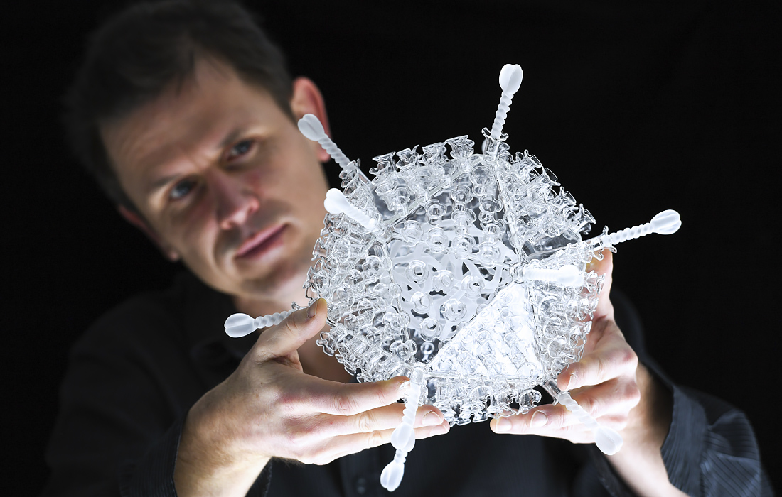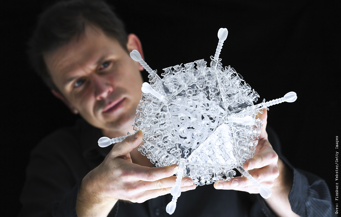 Художник Люк Джеррам создал стеклянную скульптуру вакцины против коронавируса Oxford-AstraZeneca. Модель знаменует получение прививки десятью миллионами человек в Великобритании.