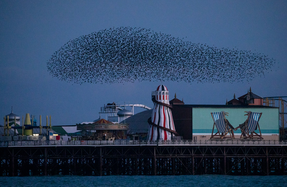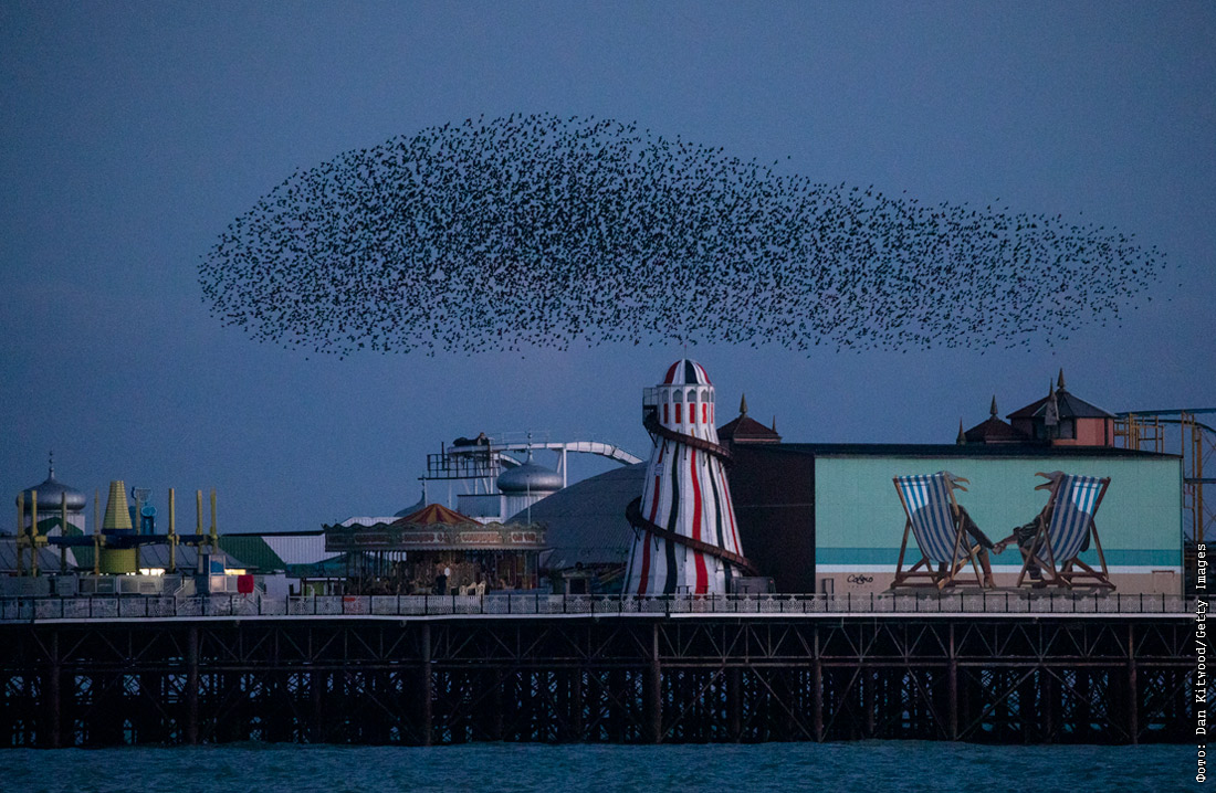 Мурмурация скворцов в Брайтоне, Англия