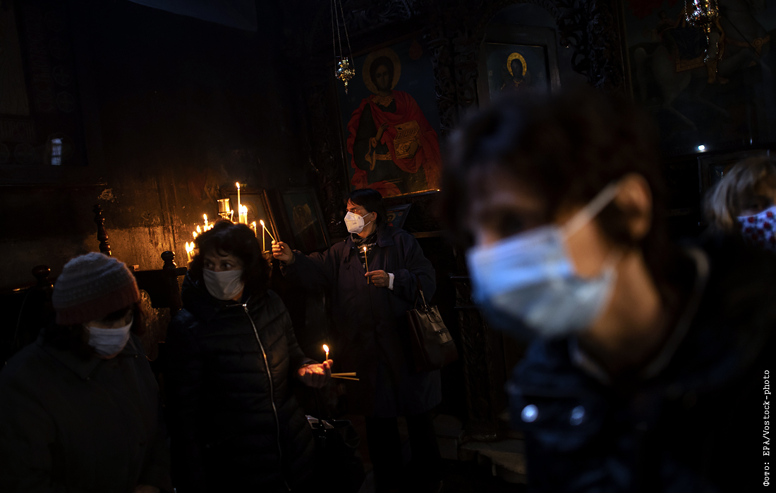 Болгарские верующие во время "освящения меда" в церкви в городе Благоевград