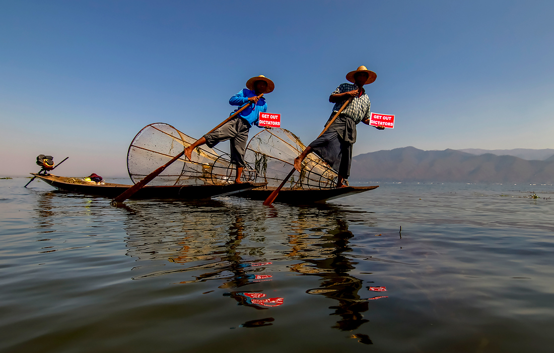 Рыбаки на озере Инле в Мьянме провели акцию против захвата власти военными