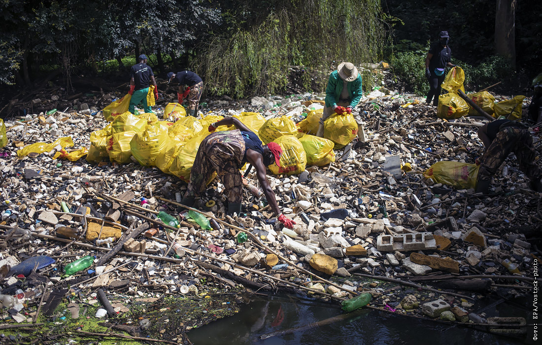 Волонтеры во время очистки реки Хеннопс от мусора, Южная Африка
