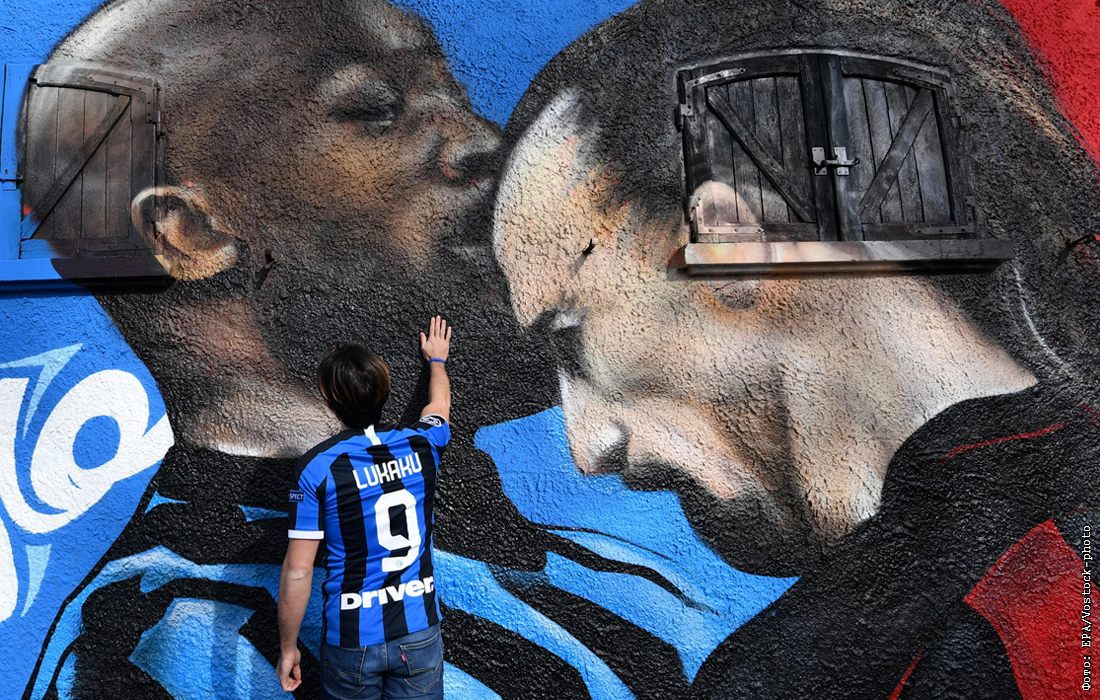В Милане появилось граффити с изображением недавней стычки между футболистом "Милана" Златаном Ибрагимовичем и игроком "Интера" Ромелу Лукаку