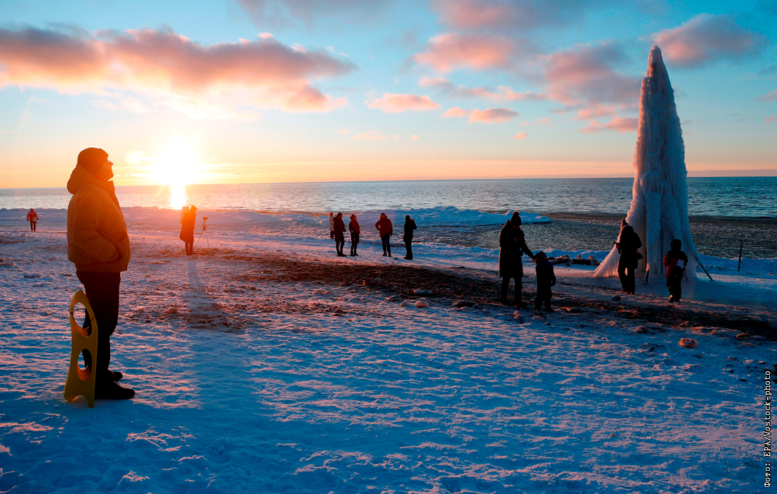 Ледяная скульптура на берегу Рижского залива в латвийском Саулкрасты