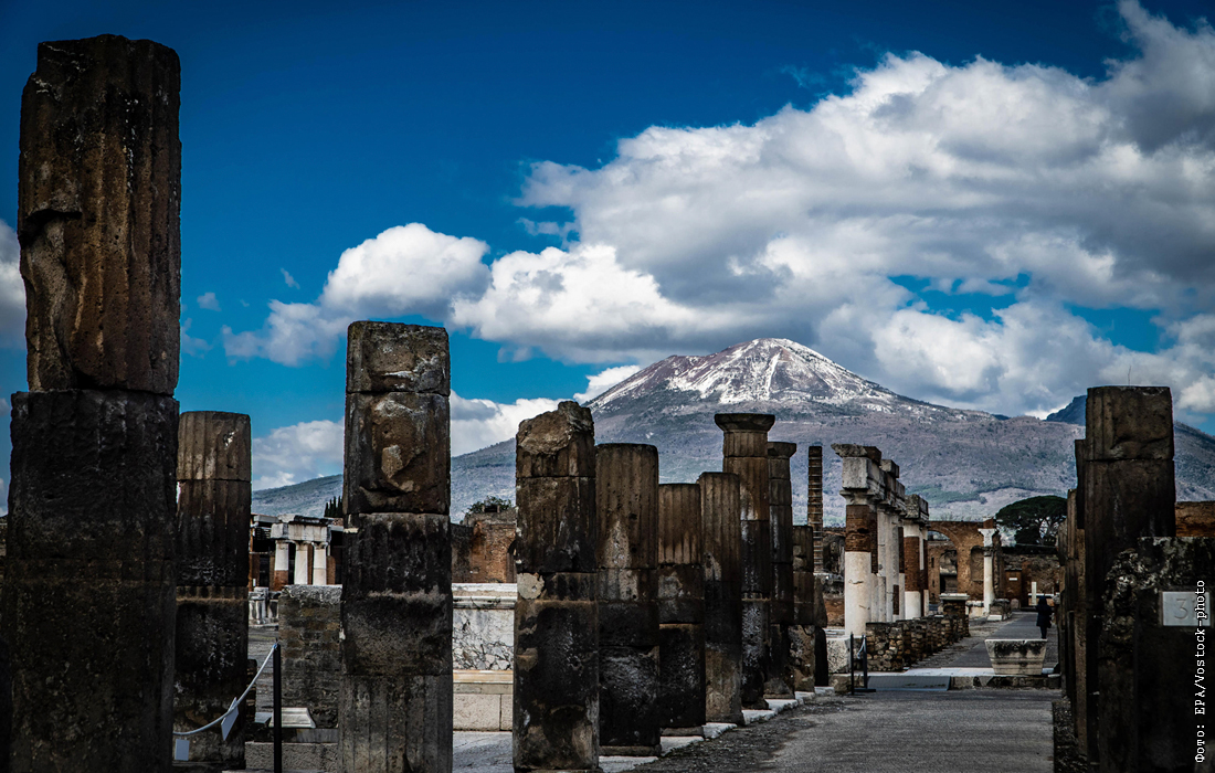 Заснеженная вершина вулкана Везувий в Италии