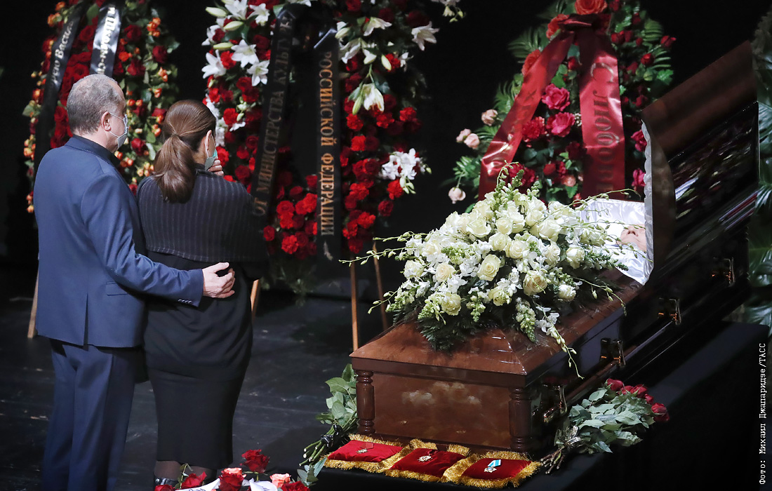 В Москве простились с народным артистом РСФСР Андреем Мягковым, скончавшимся на 83-м году жизни 18 февраля. Гражданская панихида прошла в зрительном зале основной сцены МХТ имени Чехова, в котором служил артист. Андрея Мягкова похоронят на Троекуровском кладбище.